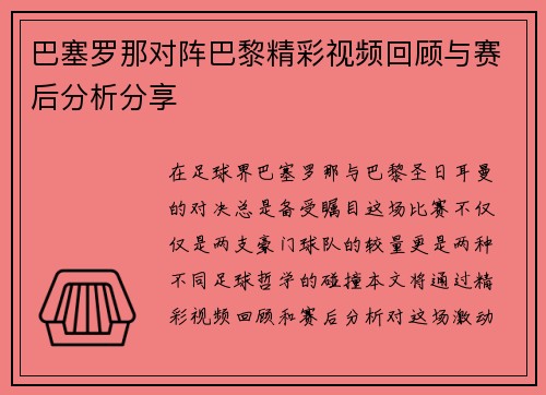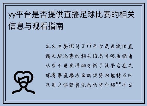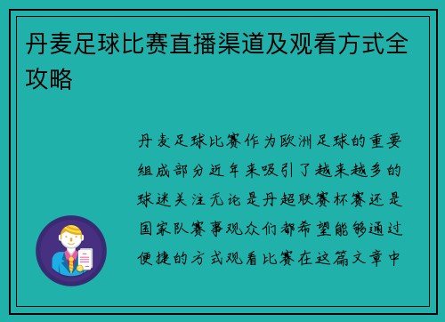 在当今数字化时代,足球比赛的观看体验已经发生了翻天覆地的变化。特别是德里克足球比赛的视频直播和全程回放功能,使得球迷们能够随时随地享受他们喜爱的比赛。在这篇文章中,我们将深入探讨德里克足球比赛视频直播的魅力所在,从实时直播、精彩瞬间回放、用户互动体验和技术支持四个方面进行详细阐述。通过对这些方面的分...